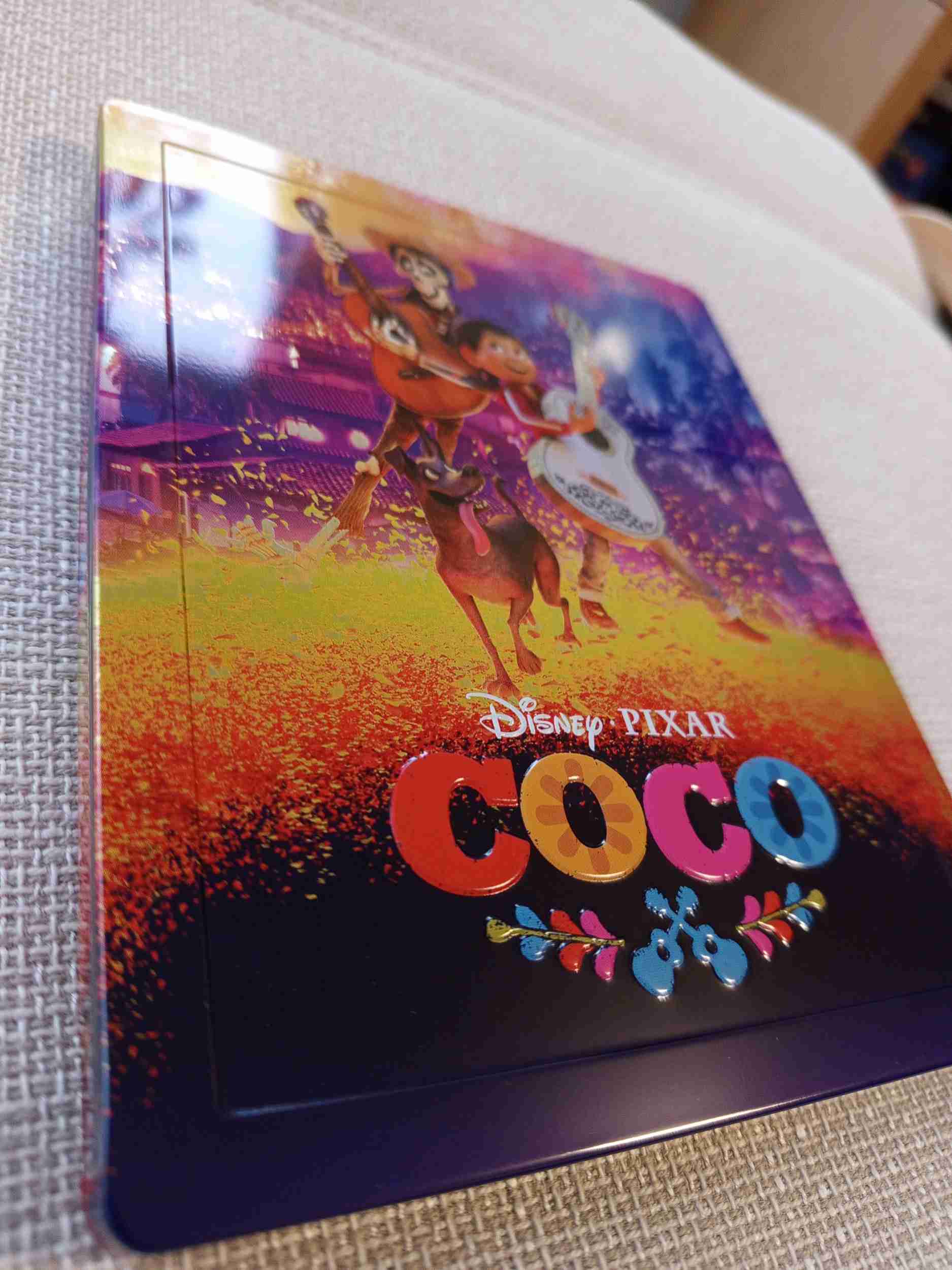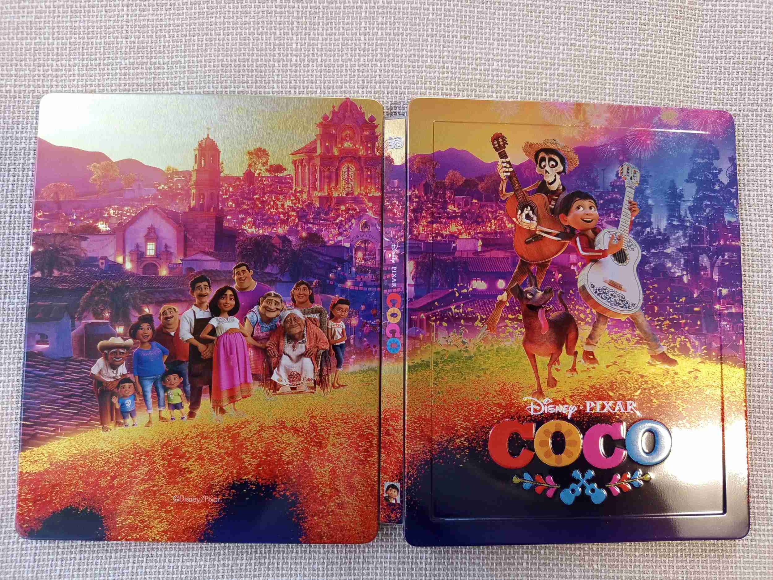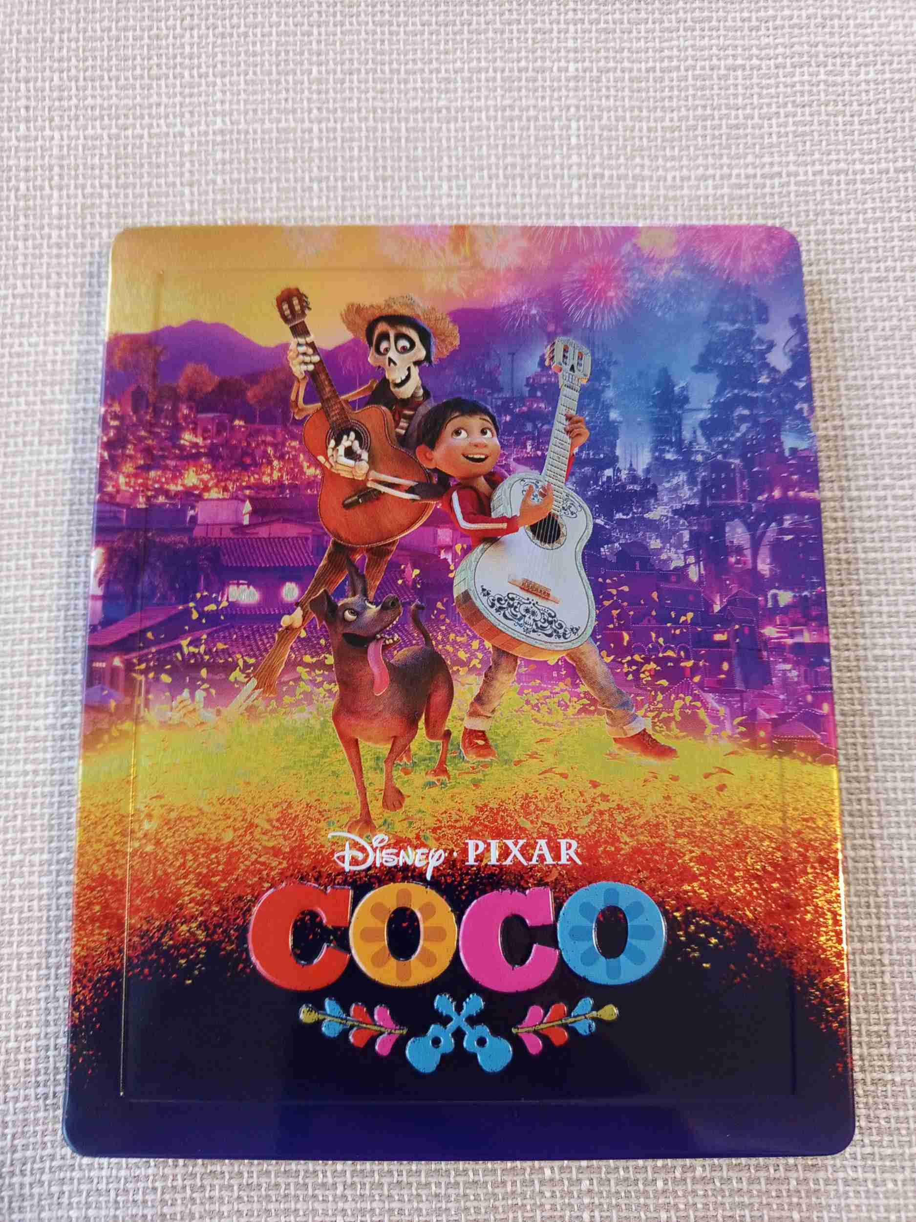 Enfin, réception d’un steelbook que je trouve pour ma part exceptionnel, l’édition blufans de Coco (2017). J’ai vraiment beaucoup aimé, un des Disney du 21è que je préfère, si ce n’est mon préféré. Il me fallait donc un premium pour ce film, et pour le coup je suis gâté. Visez plutôt : embossage, vernis de malade, reflets métalliques de partout, couleurs éclatantes comme jamais, continuité recto verso. Pffff. Je vous laisse apprécier le travail sur les photos, y compris sur le fullslip. Un de mes plus beaux steelbooks dorénavant. Le recto :
