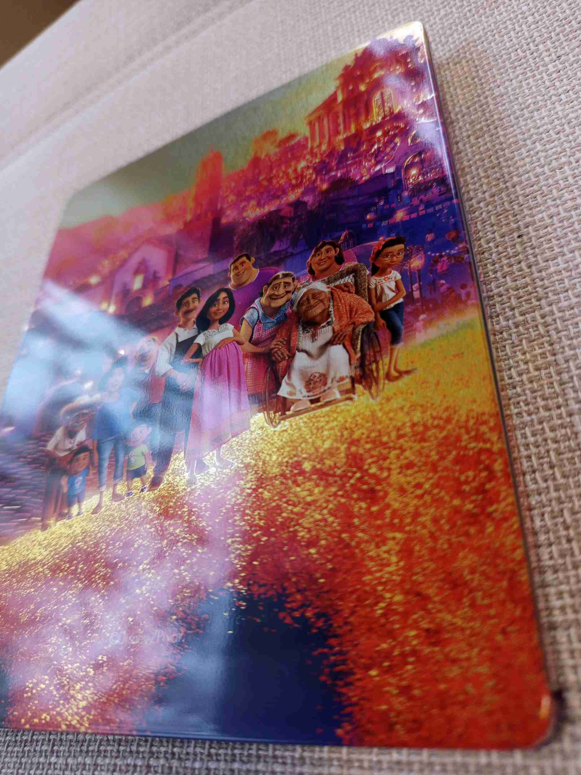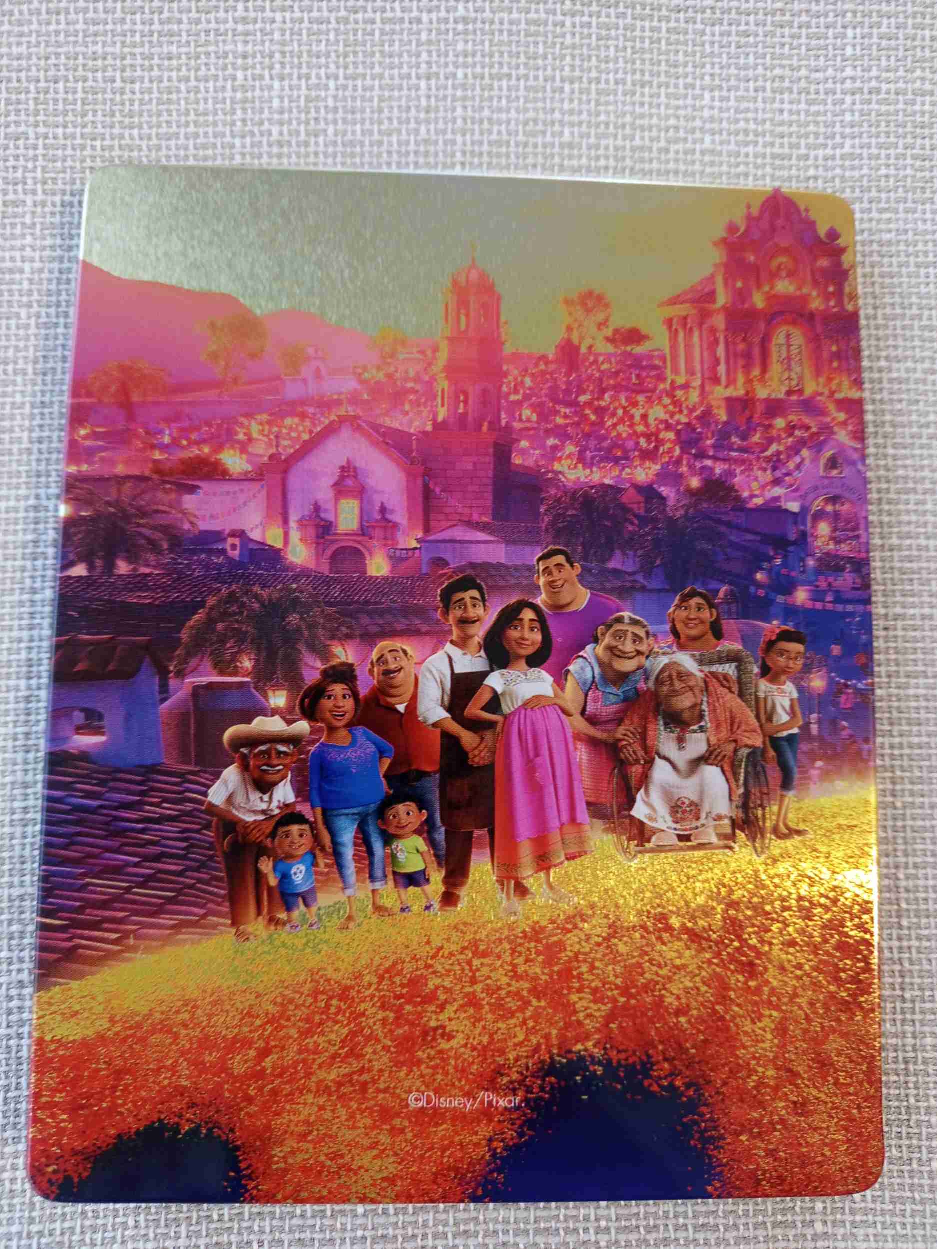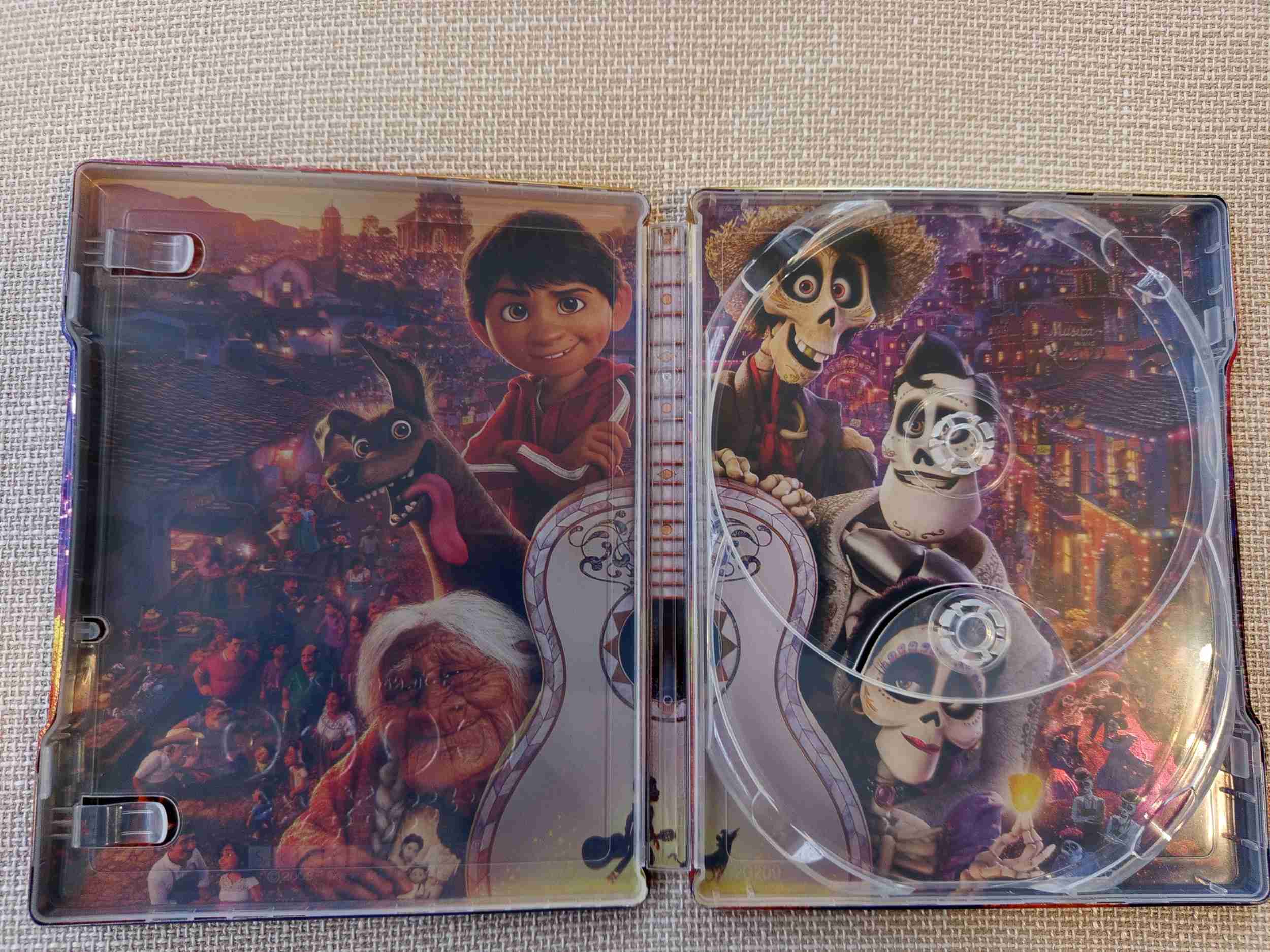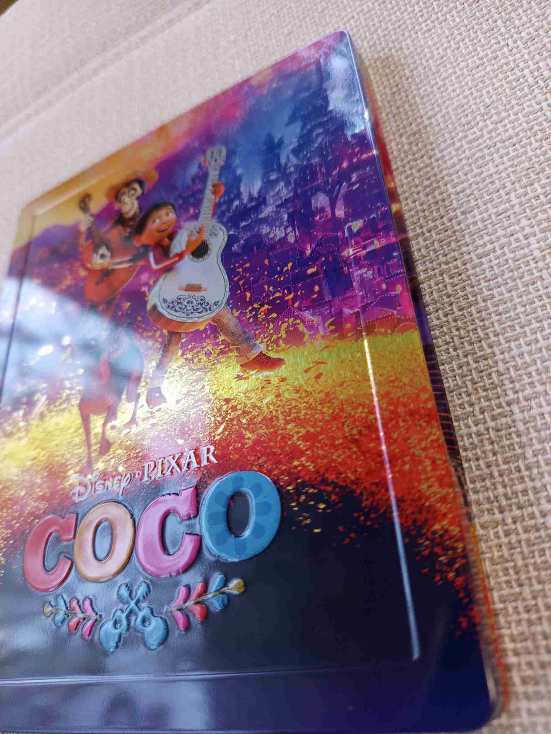 Enfin, réception d’un steelbook que je trouve pour ma part exceptionnel, l’édition blufans de Coco (2017). J’ai vraiment beaucoup aimé, un des Disney du 21è que je préfère, si ce n’est mon préféré. Il me fallait donc un premium pour ce film, et pour le coup je suis gâté. Visez plutôt : embossage, vernis de malade, reflets métalliques de partout, couleurs éclatantes comme jamais, continuité recto verso. Pffff. Je vous laisse apprécier le travail sur les photos, y compris sur le fullslip. Un de mes plus beaux steelbooks dorénavant. Le recto :