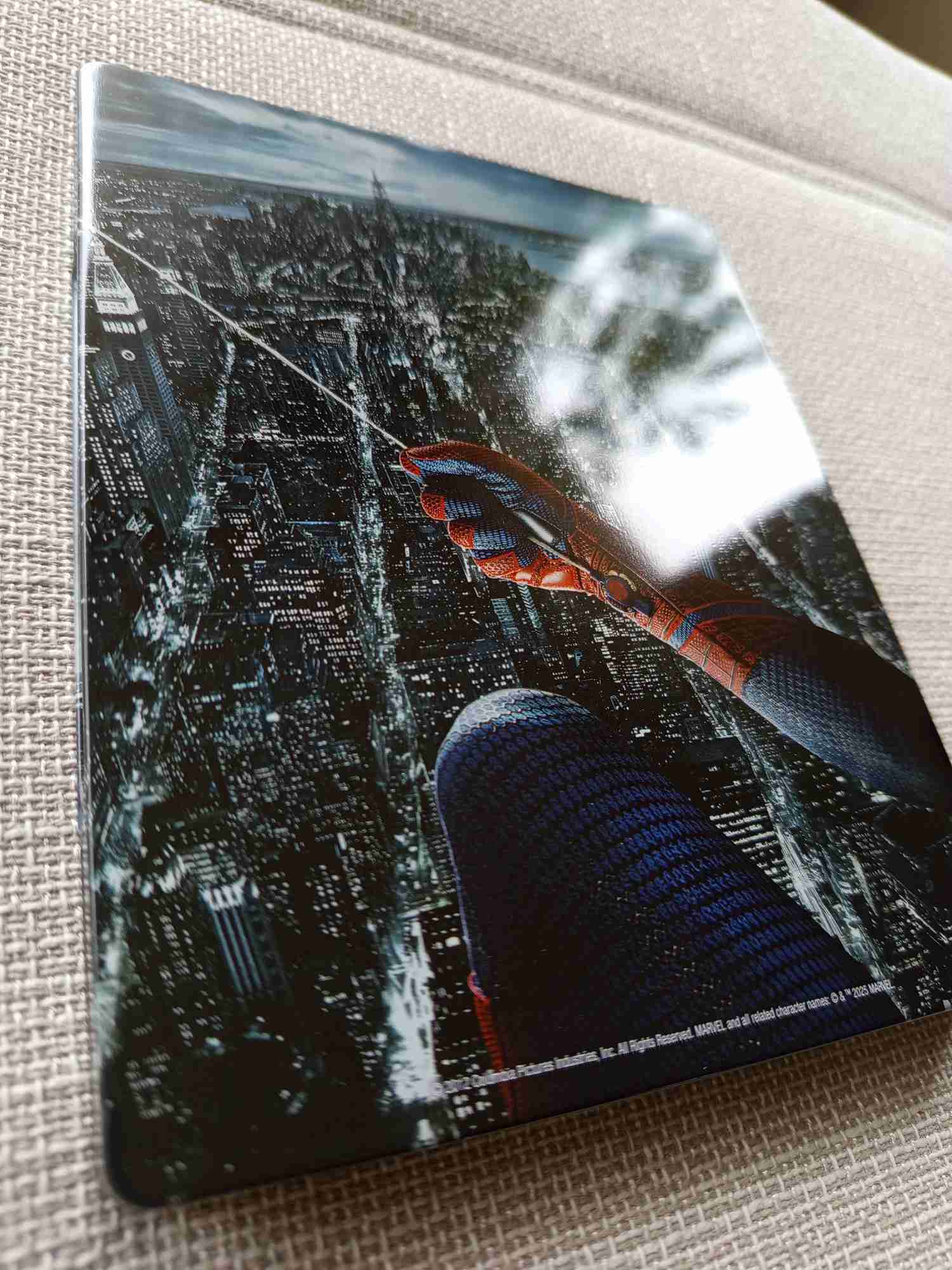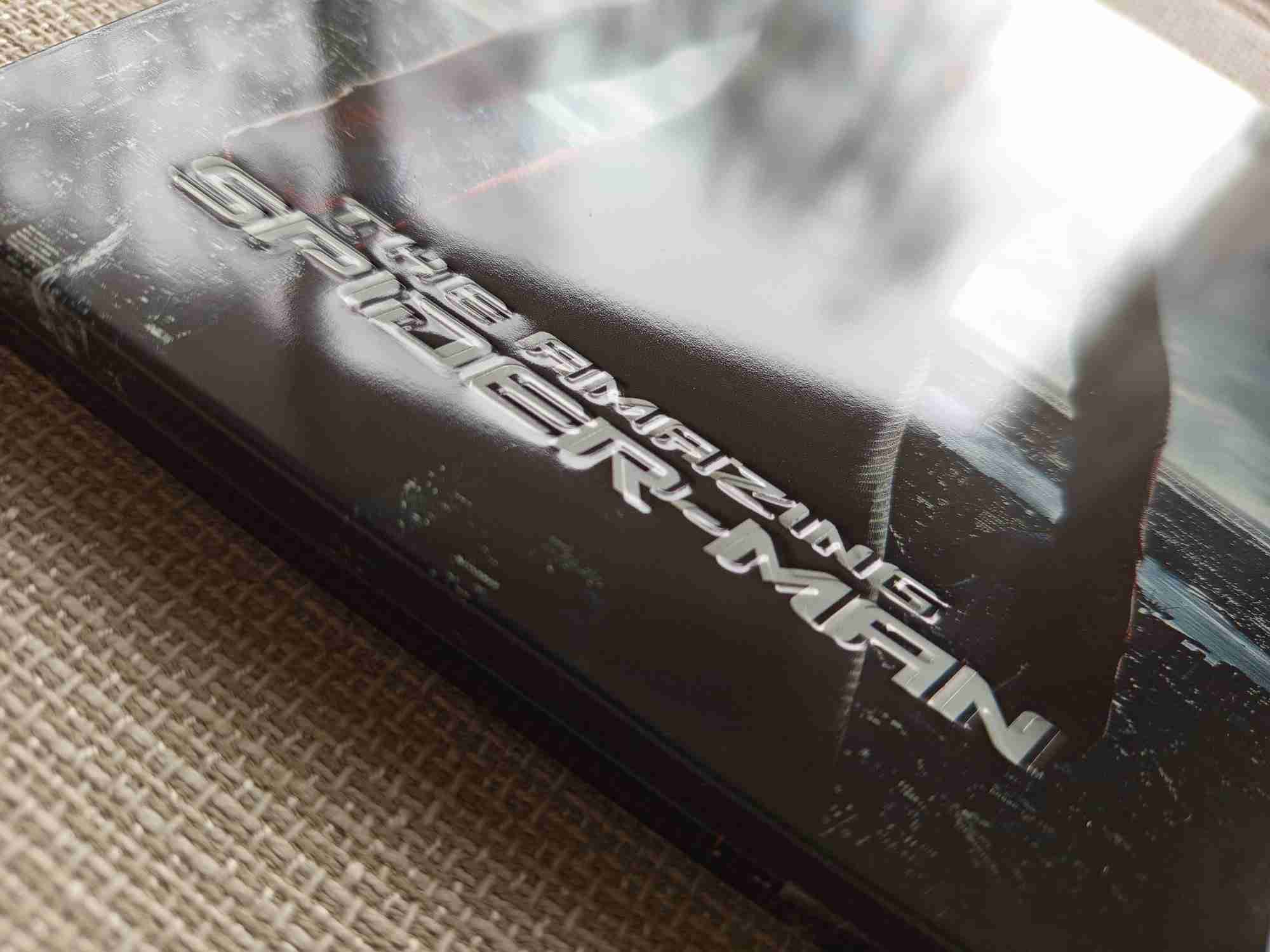 Quelques photos de l’édition fullslip Manta Lab de « The amazing Spider-man ». On ne va pas polémiquer pour savoir laquelle des éditions est la meilleure entre la Weet et la Manta Lab, disons que quand on n’a pas pu avoir la première, la seconde est un excellent compromis. J’étais réservé sur les visuels du second volet, ceux-ci me conviennent beaucoup plus. La finition est comme toujours au top, avec un glossy bien épais et TRES glossy, un beau débossage, pour un rendu vraiment sympa en main. Le fullslip est cool aussi. Recto :