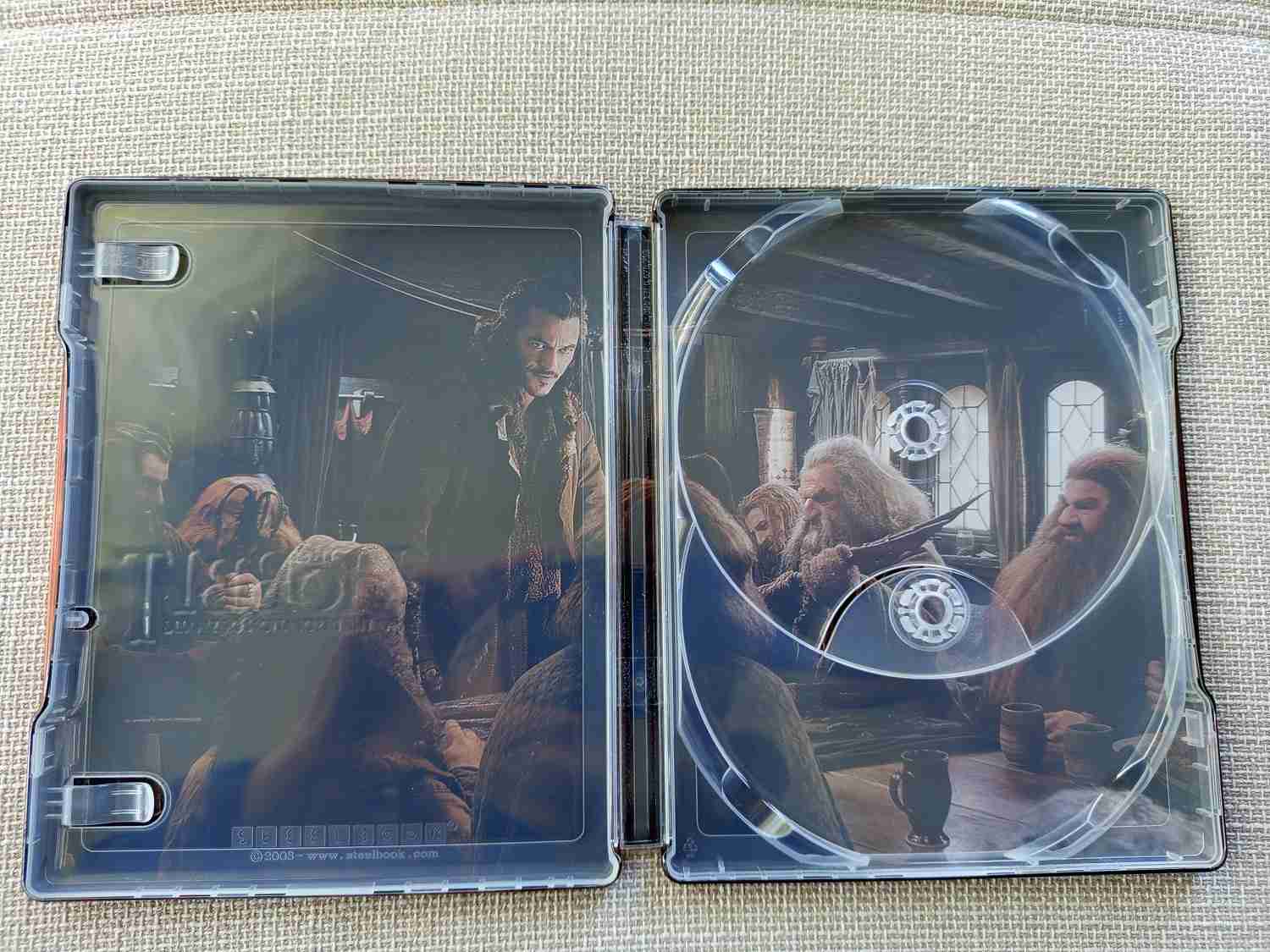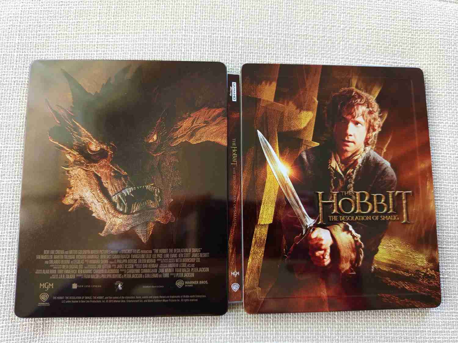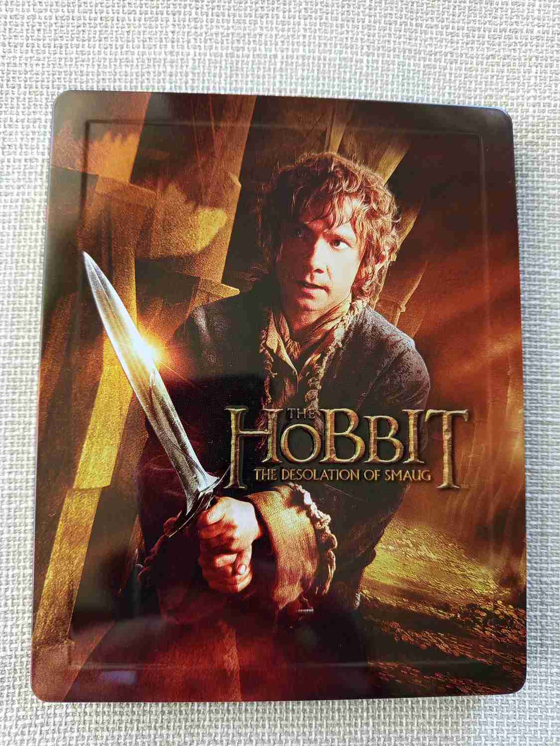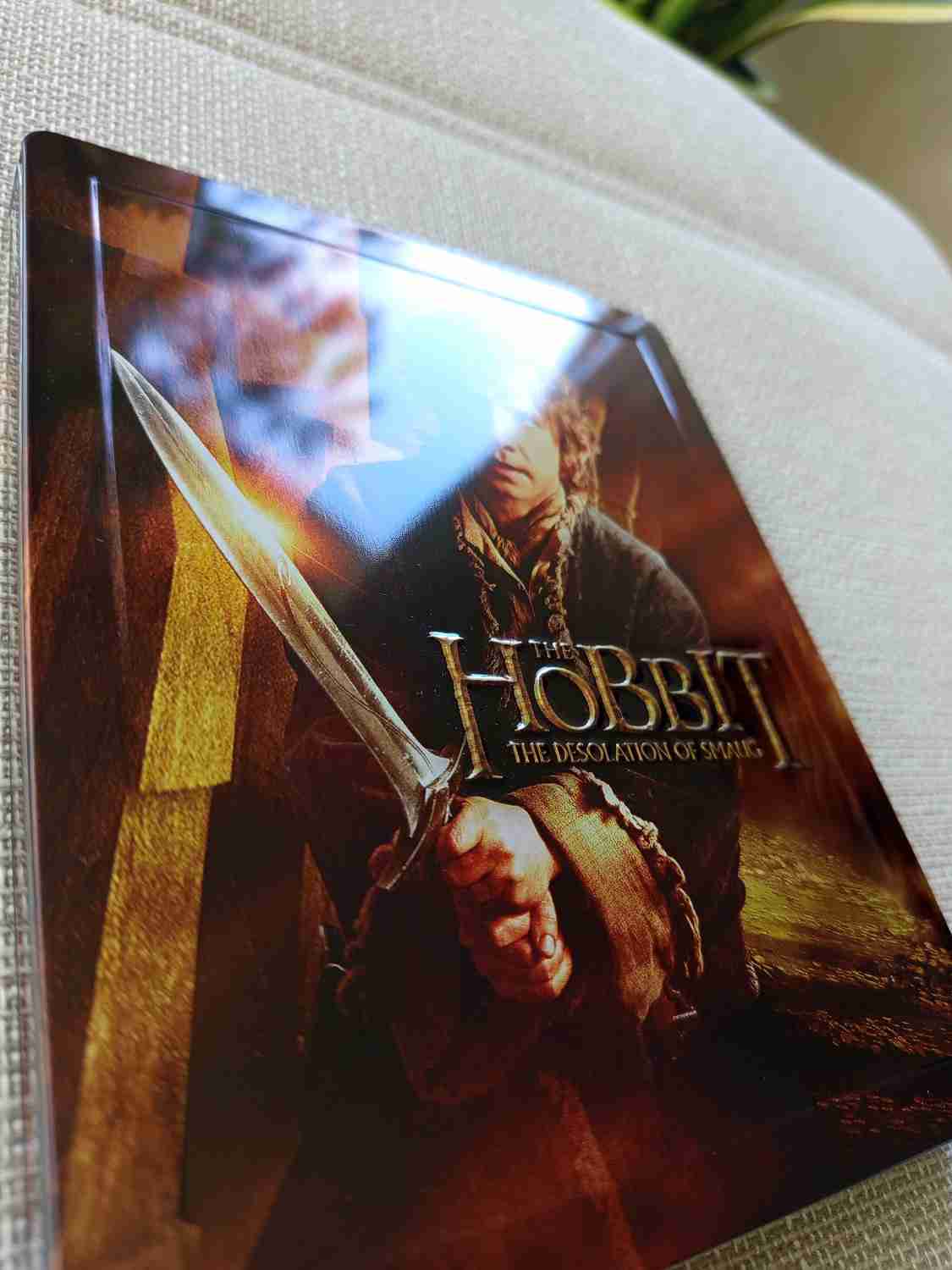 On continue avec The desolation of Smaug (2013). Même constat sur les finitions, avec des visuels que je trouve encore plus réussis. Il y a eu pas mal de retours sur le steelbook en lui-même, concernant une défaillance du contrôle qualité. Des acheteurs ont signalé des pocs et autres paint chips, pour ma part je m’en tire bien en ayant à déplorer seulement quelques micro rayures visibles sous forte lumière artificielle. Photos du recto :