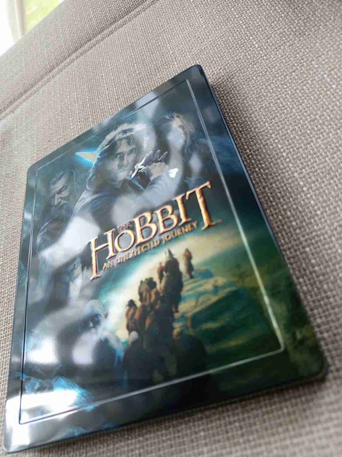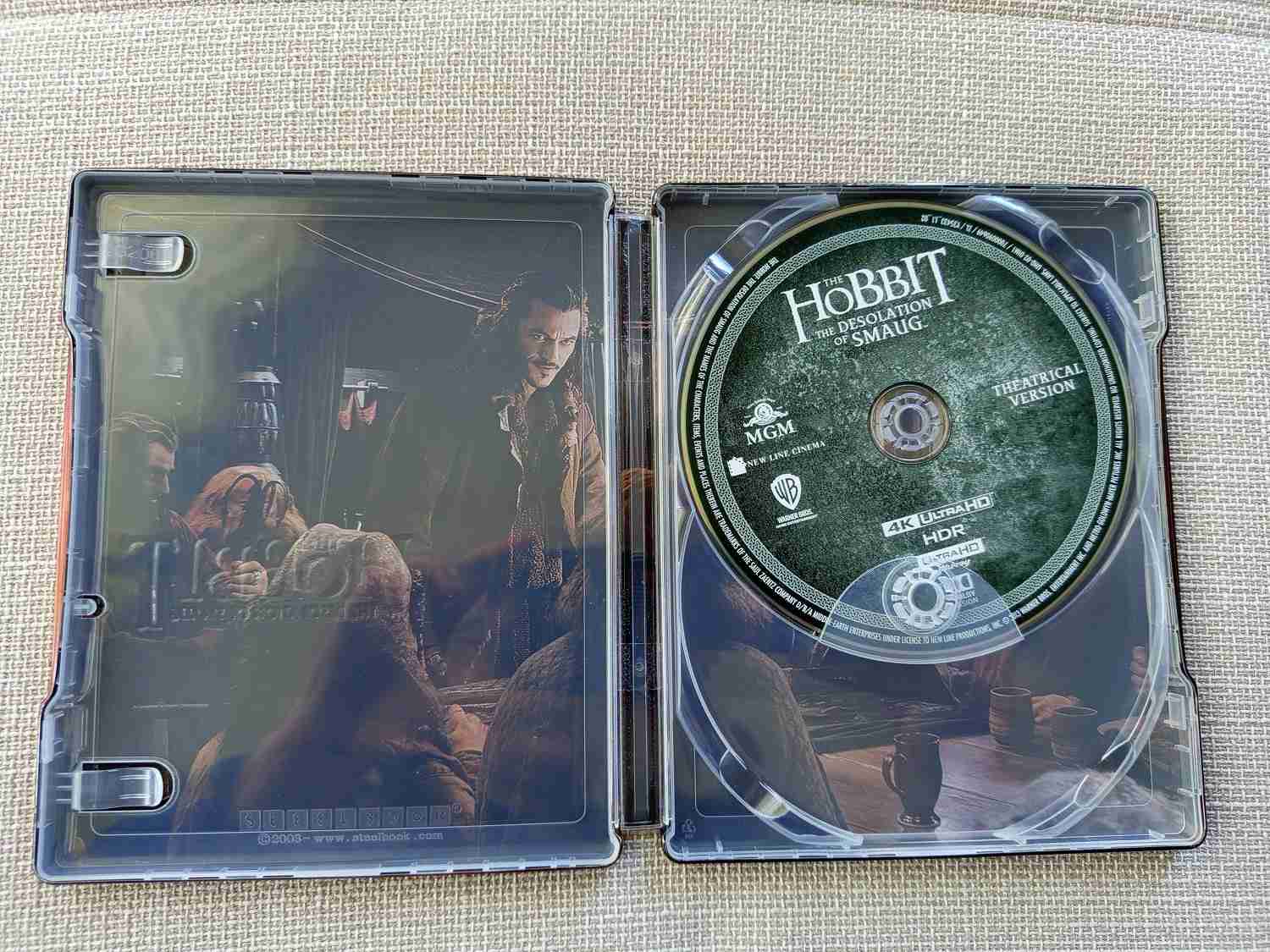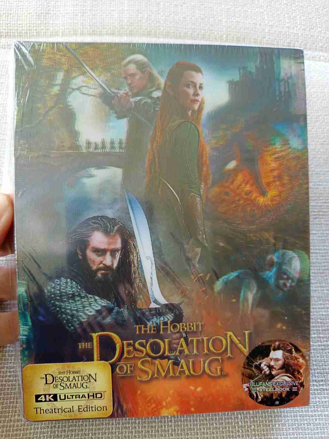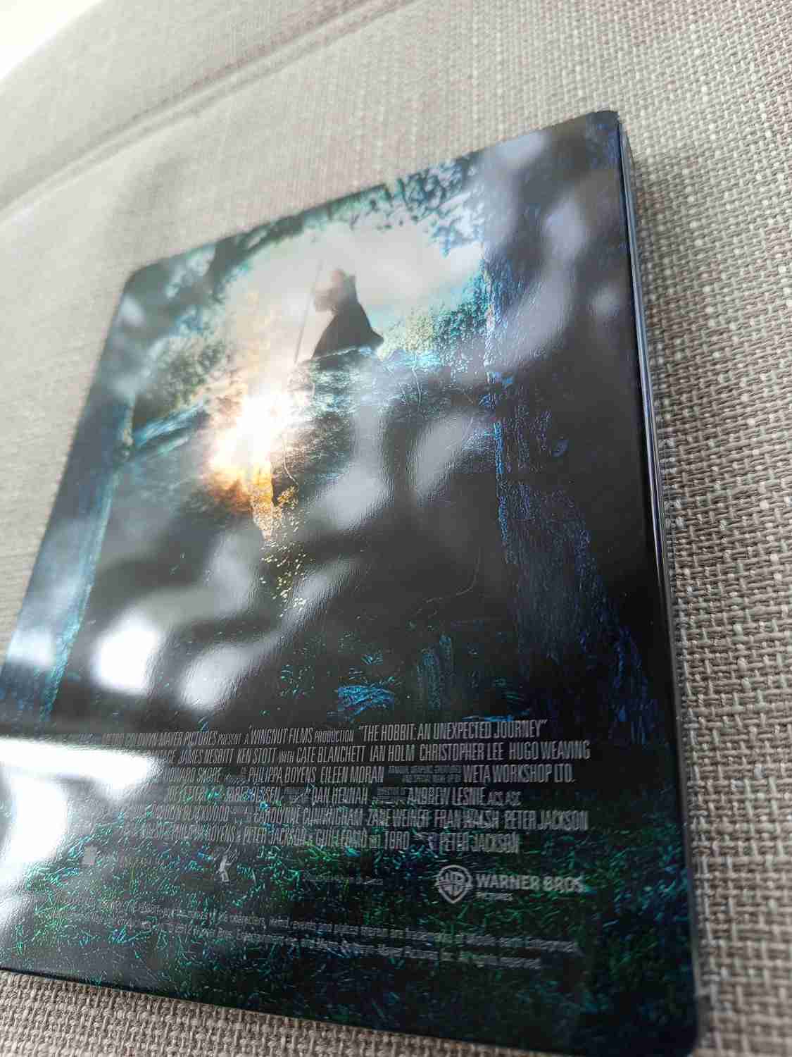 On continue avec The desolation of Smaug (2013). Même constat sur les finitions, avec des visuels que je trouve encore plus réussis. Il y a eu pas mal de retours sur le steelbook en lui-même, concernant une défaillance du contrôle qualité. Des acheteurs ont signalé des pocs et autres paint chips, pour ma part je m’en tire bien en ayant à déplorer seulement quelques micro rayures visibles sous forte lumière artificielle. Photos du recto :