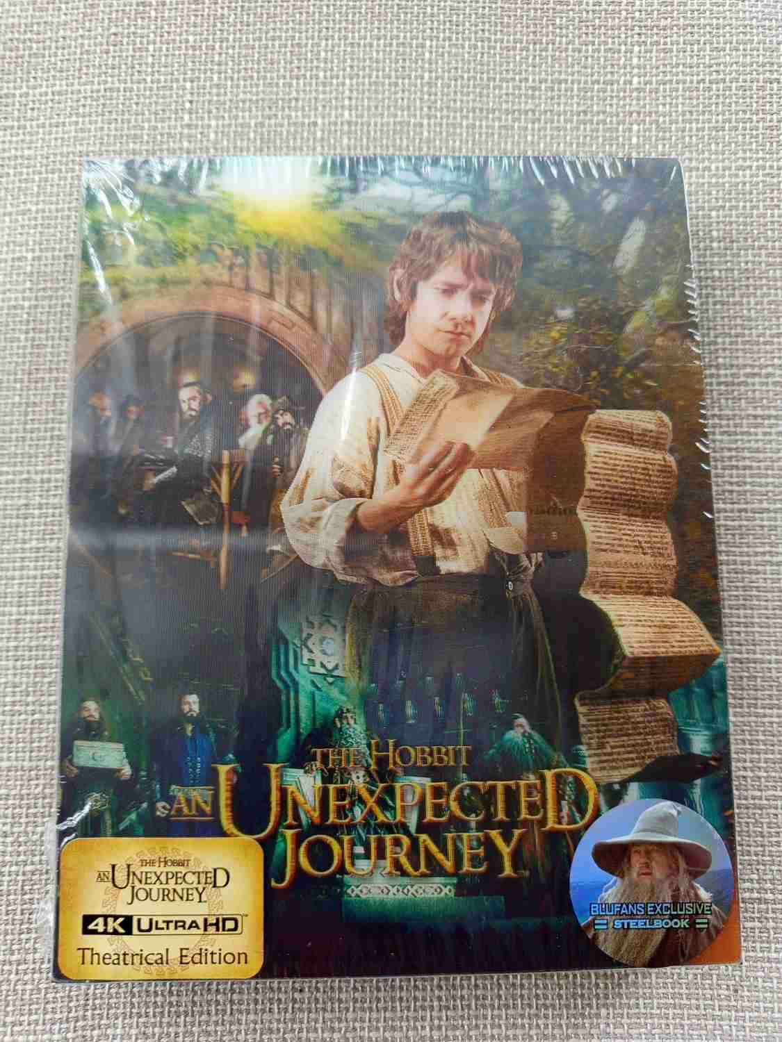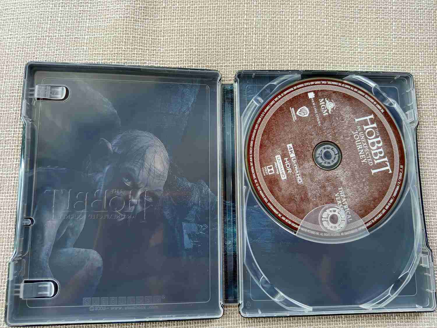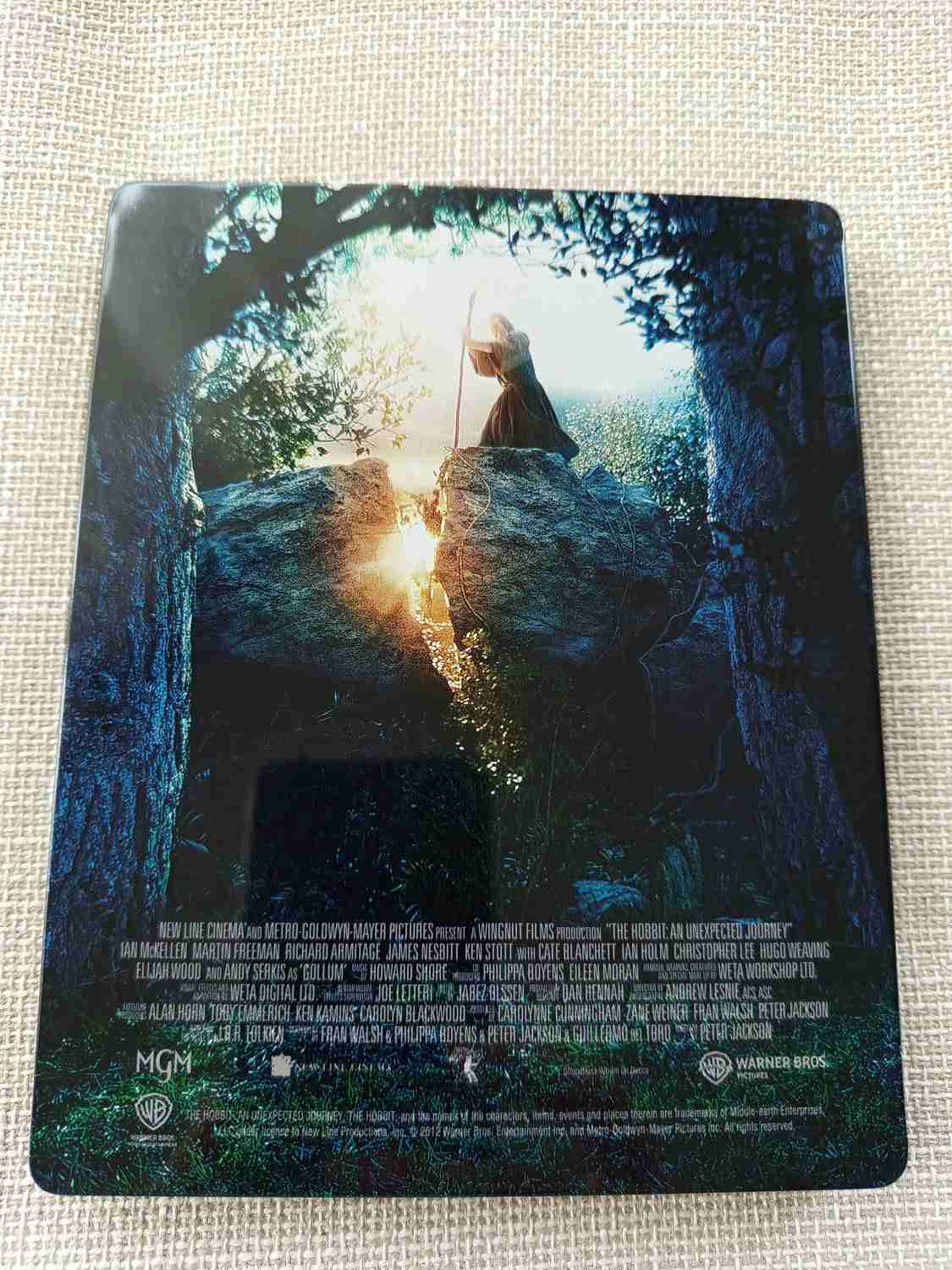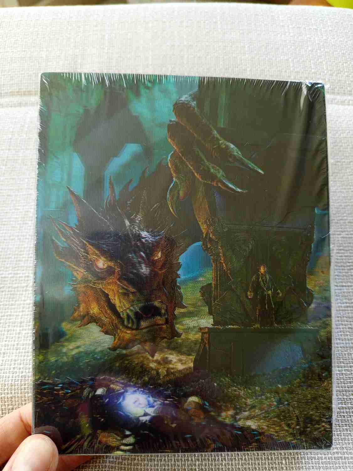 On continue avec The desolation of Smaug (2013). Même constat sur les finitions, avec des visuels que je trouve encore plus réussis. Il y a eu pas mal de retours sur le steelbook en lui-même, concernant une défaillance du contrôle qualité. Des acheteurs ont signalé des pocs et autres paint chips, pour ma part je m’en tire bien en ayant à déplorer seulement quelques micro rayures visibles sous forte lumière artificielle. Photos du recto :