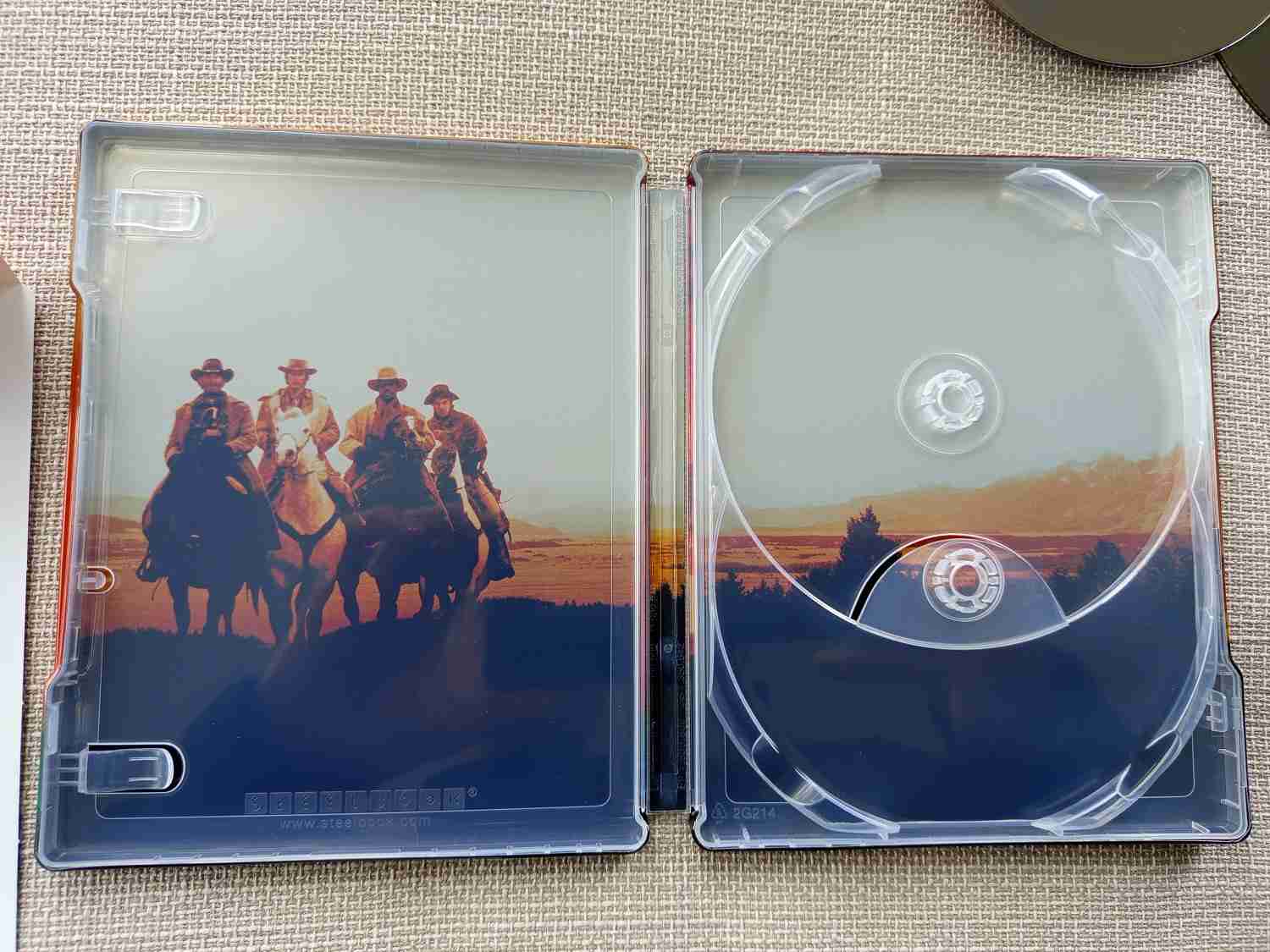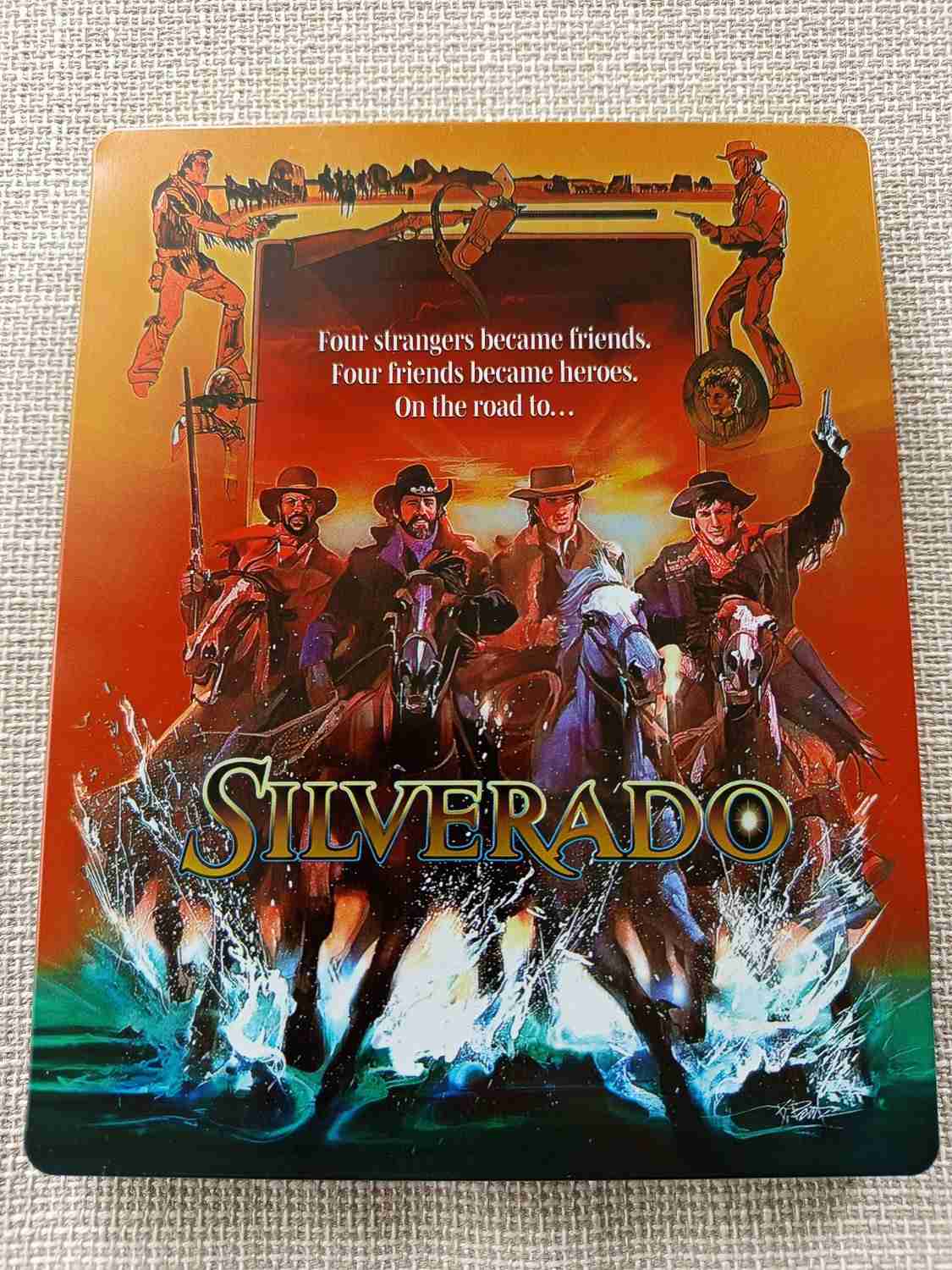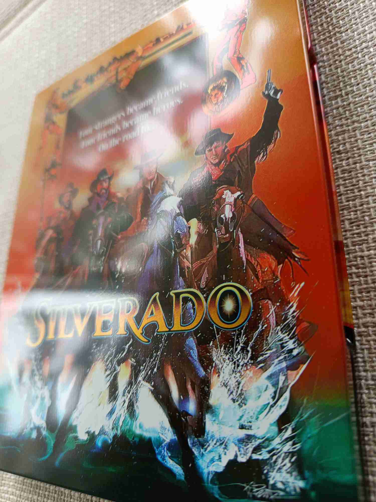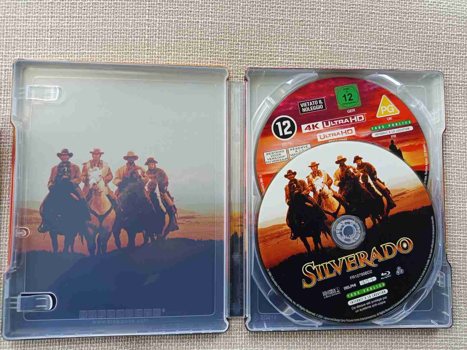 Deuxième réception : Silverado (1985) de Lawrence Kasdan, connu surtout pour son travail sur la saga Star Wars et moins pour ses films. Un bon petit western à l’ancienne qui part dans tous les sens, doté d’un casting 4 étoiles. Du même réalisateur, on peut préférer Wyatt Earp, dans une veine plus crépusculaire, mais celui-ci est parfait pour ceux qui ne connaissent pas trop le genre et qui veulent passer un bon moment sans prise de tête. Steelbook glossy avec des couleurs éclatante. Il rend très bien en main ! Les disques sont joliment sérigraphiés.