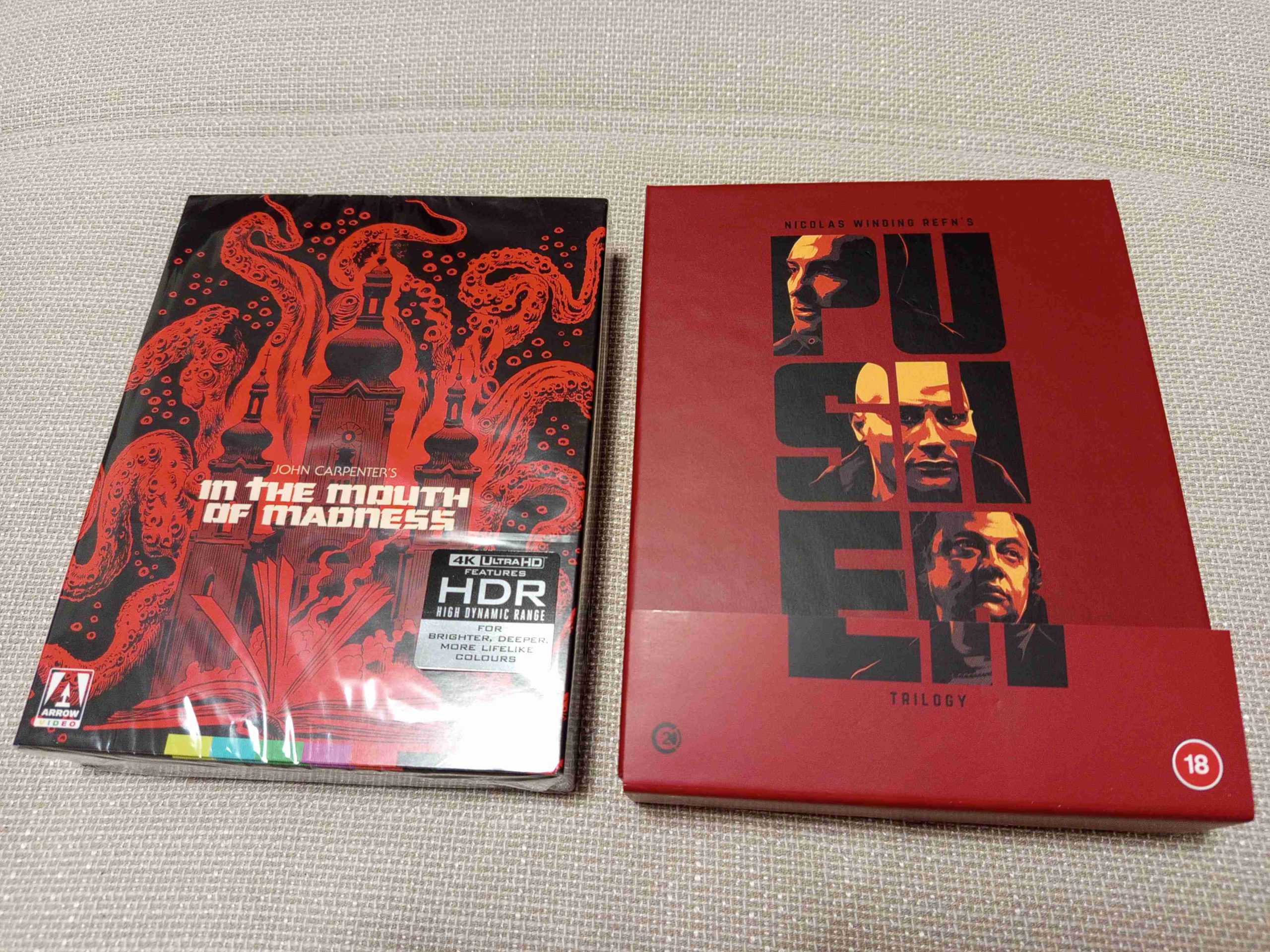 Dernière chose pour aujourd’hui, ce n’est pas du steelbook, mais deux masterpieces quand même : réception de L’antre de la folie chez Arrow et trilogie Pusher édition Second sight.