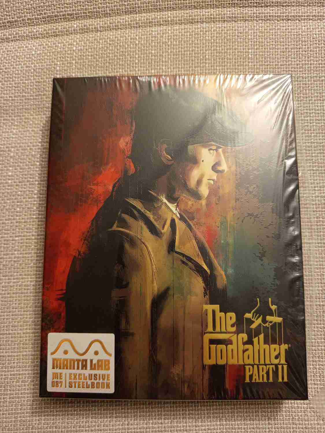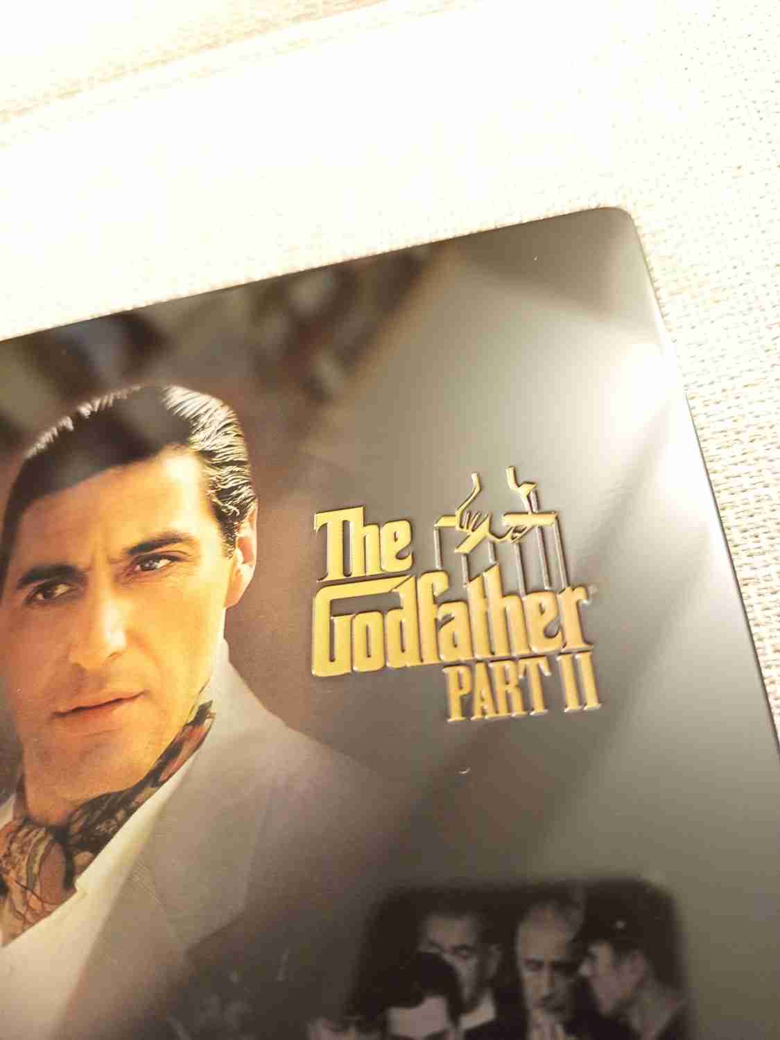Deux belles réceptions ce jour : une fois n’est pas coutume, on va commencer avec le plat de résistance, à savoir la deuxième partie du Parrain dans son édition Manta Lab. Ceux qui possèdent le 1 ne seront pas surpris. Cette suite affiche la même esthétique, les mêmes qualités de finition, débossage du titre, vernis épais et bien brillant… Sans plus de parole, quelques photos qui lui rendent insuffisamment justice (car prises dans des conditions de luminosité difficile). Le recto :