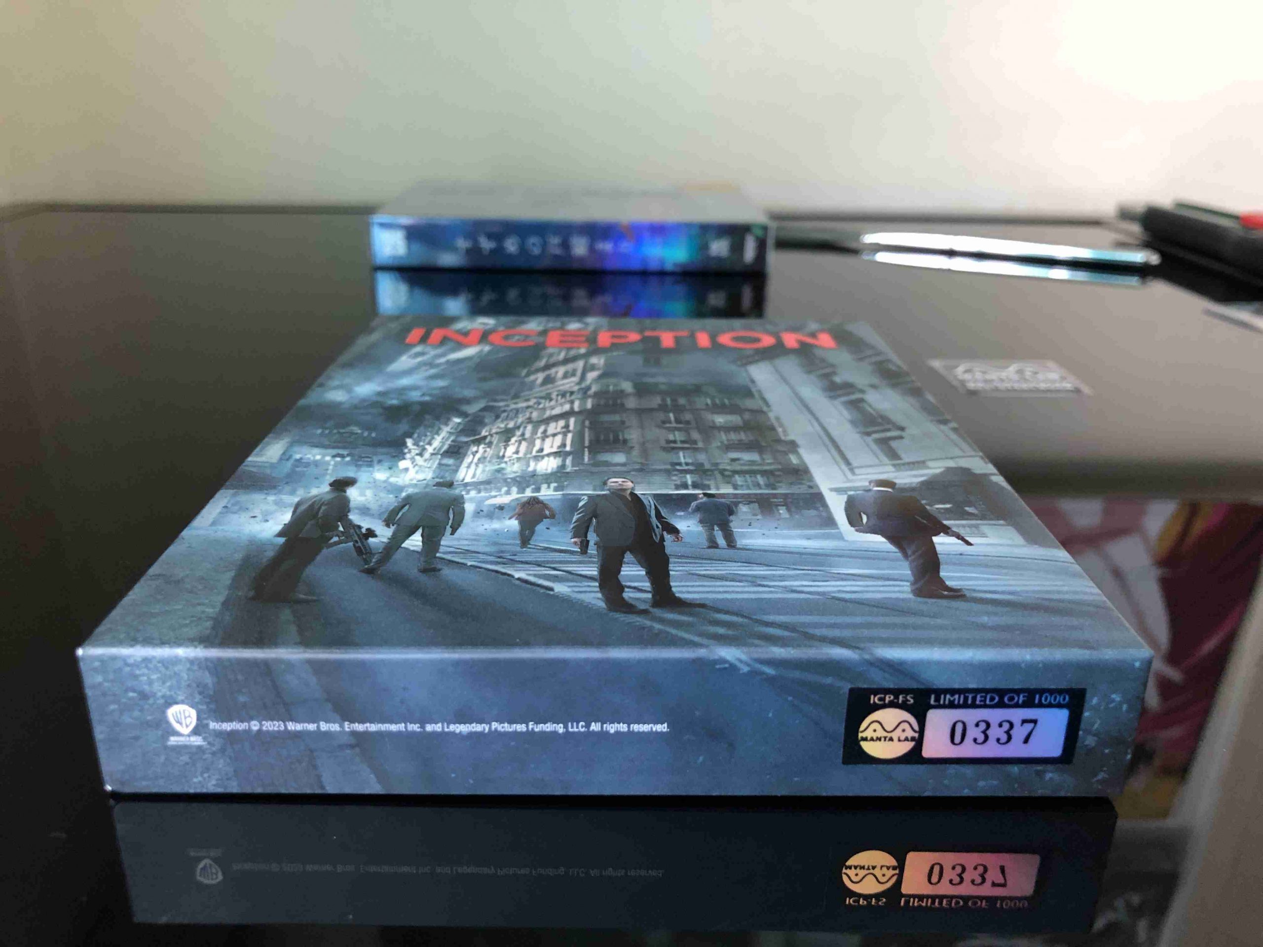 J’ai enfn reçu mon Inception, l’un des Manta Labs que je cherchais le plus !! L’un de mes films préférés ! Version FullSlip, celui que je préfère, principalement pour le verso, même si j’aime aussi le recto. Le FullSlip est magnifique, avec beaucoup de texture sur la fumée, les fenêtres, les murs… Spot Gloss bien sûr, sur les personnages et le titre. Le Steelbook est tout simplement incroyable, l’affiche sur le recto tout simplement, l’un de mes visuels préférés pour ce film. Titre débossé et ultra vernis en rouge de malade, tout simplement magnifique ! Bourré de reflet métallique sur… Read more »