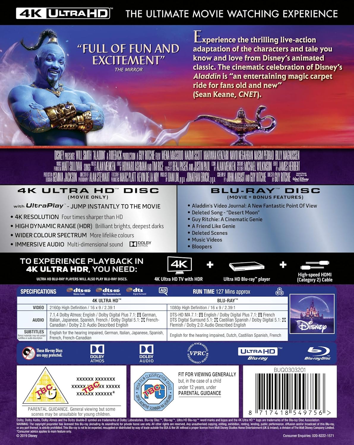 — 22 mai 2019 — Le film live « Aladdin » sortira en steelbook : les précommandes sont ouvertes chez fnac (édition spéciale fnac) et chez zavvi. Ce dernier propose encore le choix entre 3D et 4K. Le visuel est provisoire. Le code 4KPRO10 fonctionne pour avoir -10% sur l’édition 4K sur zavvi FR.