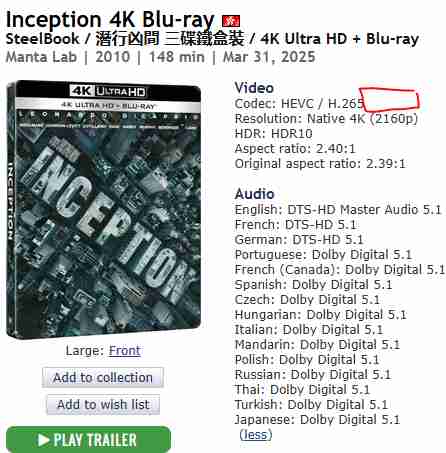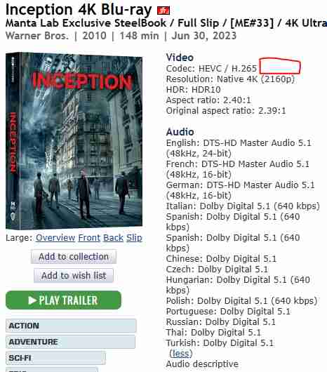 D’ailleurs va falloir que je vérifie ça pour Inception… Il y a la VFF sur le Manta mais si notre disque FR est meilleur… Edit: Apparemment pour Inception c’est le même bitrate car notre disque FR est inondé de langue également… (c’est exactement la même chose que l’US en fait) C’est pas bon de faire ça!!! Tu regardes Ballerina il n’y a que l’Anglais et le Français, et le disque à un bitrate de cinglé stable dans les 90 et avec des pointes à 100+. Inception, seulement 59.3… bah ouais… Voilà pk la qualité vidéo est pas ouf non plus.… Read more »
