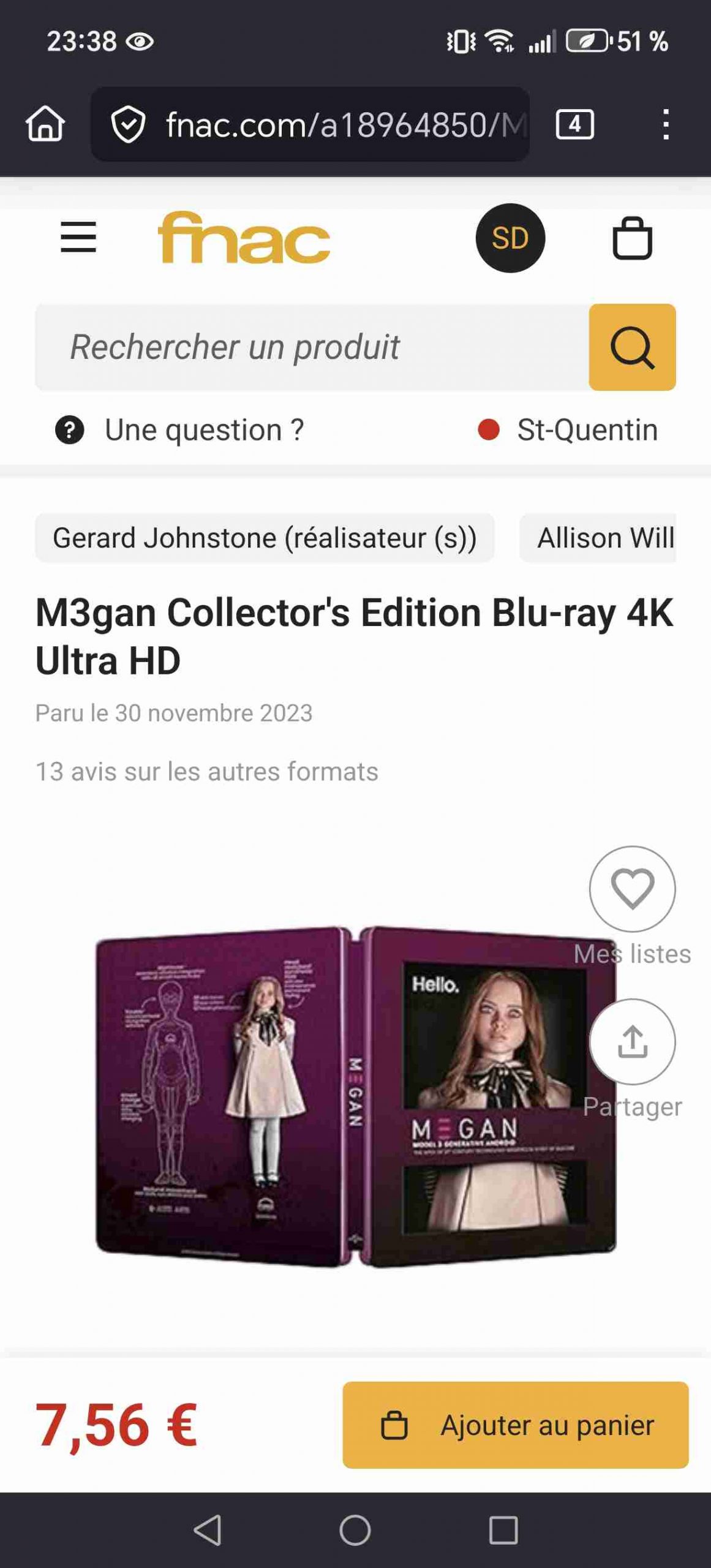 — MAJ le 07 juillet 2023 — Le steelbook 4K de « Megan » est désormais précommandable sur amazon.fr.