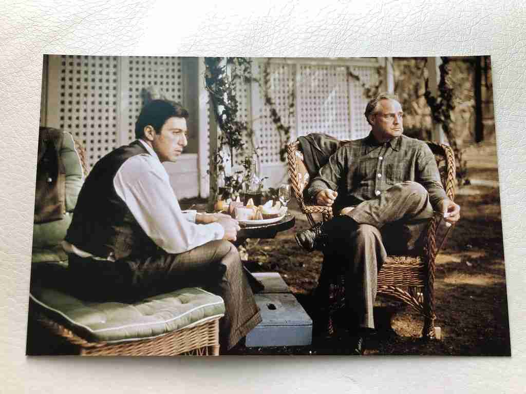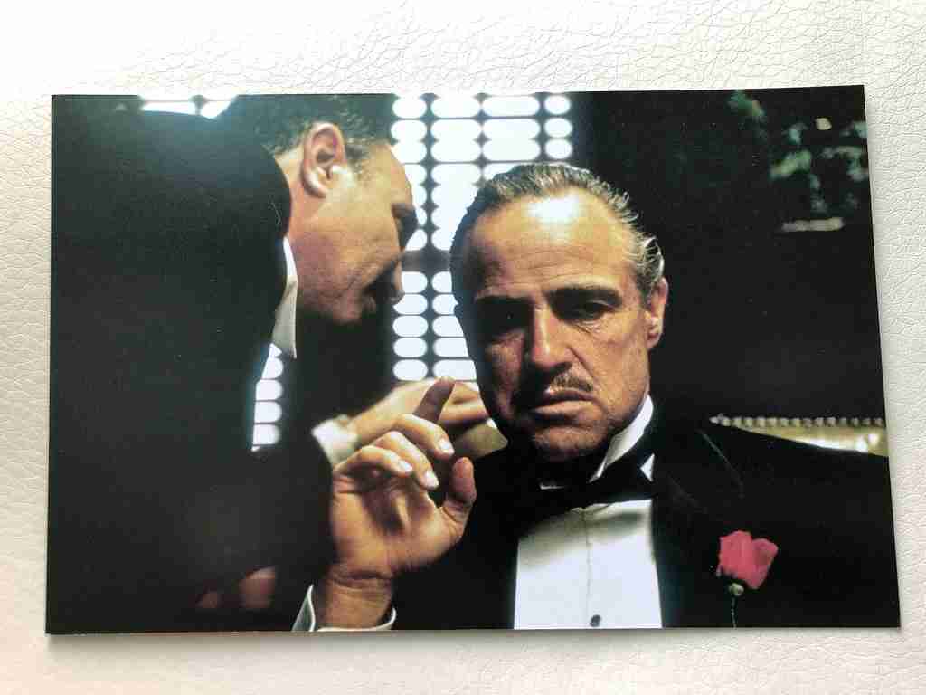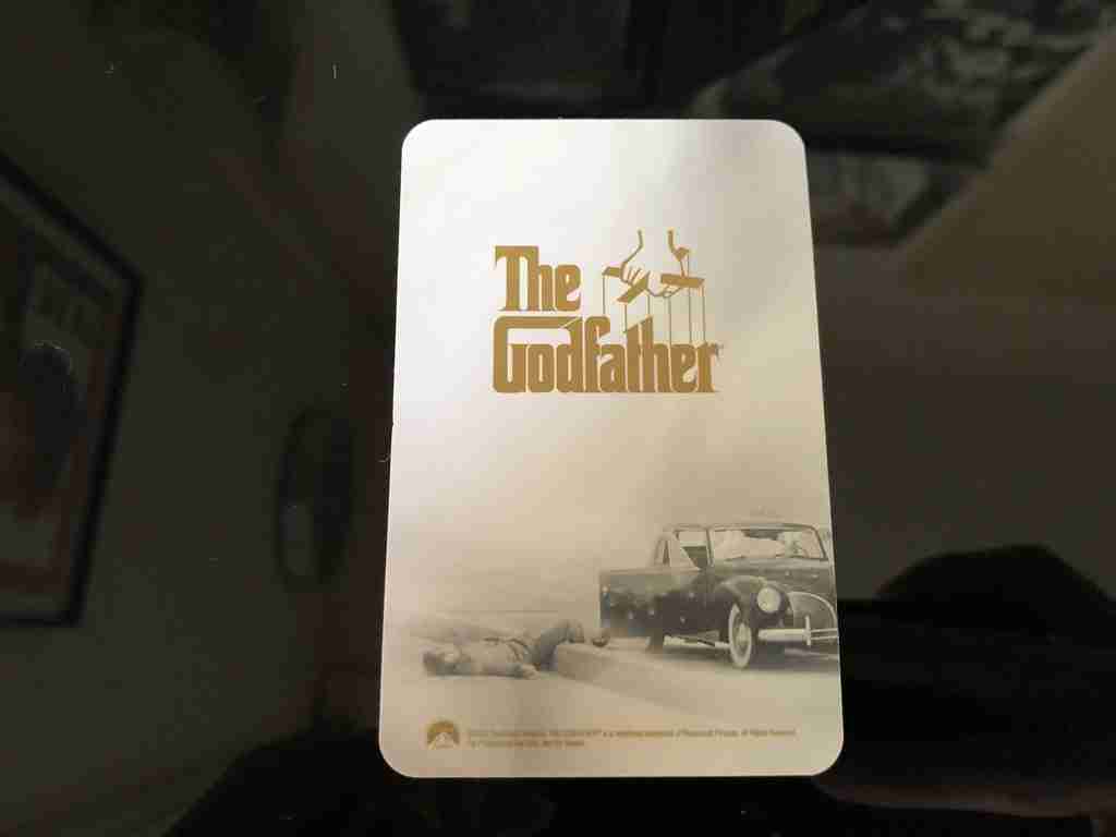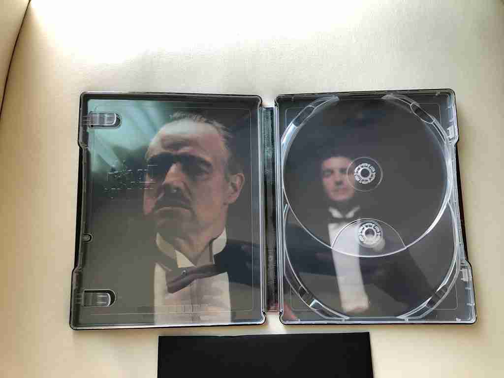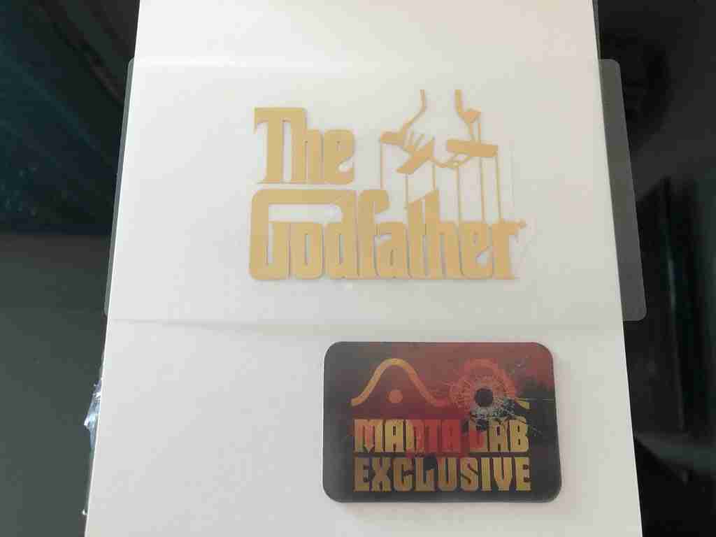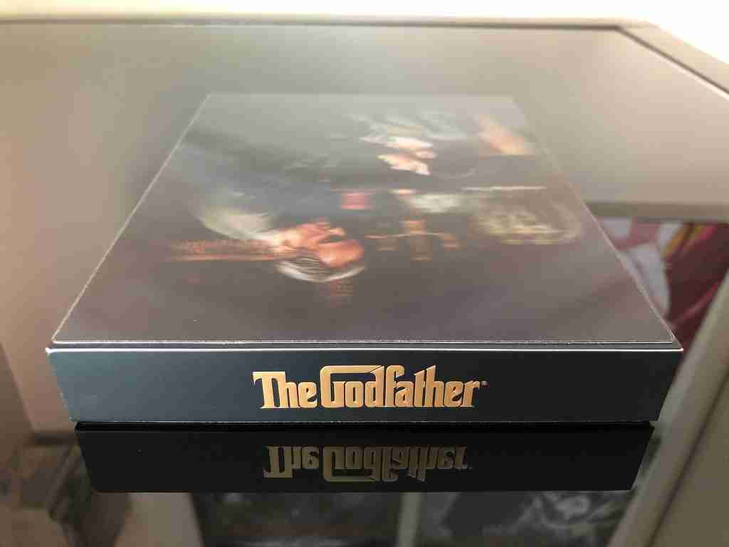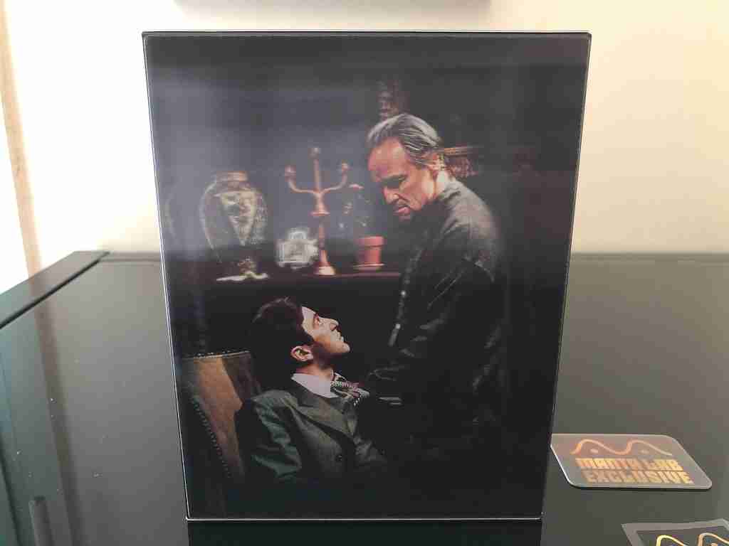 Visuel de Vito corleone gâché par les quatre protagonistes en bas à droite, le visuel du verso moyen. Les fourreaux sont biens en particulier le FS et DL-B, petite préférence pour le Full slip et bien curieux de voir le travail de manta sur le recto que je trouve superbe