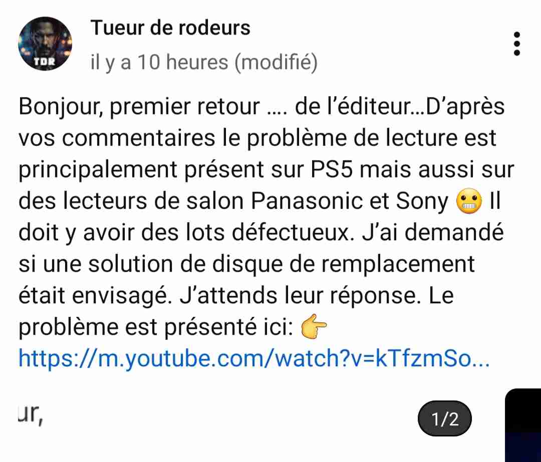 - Des problèmes de lecture ont été signalés avec la PS5 comme lecteur : le problème : un retour au menu en lançant le film.