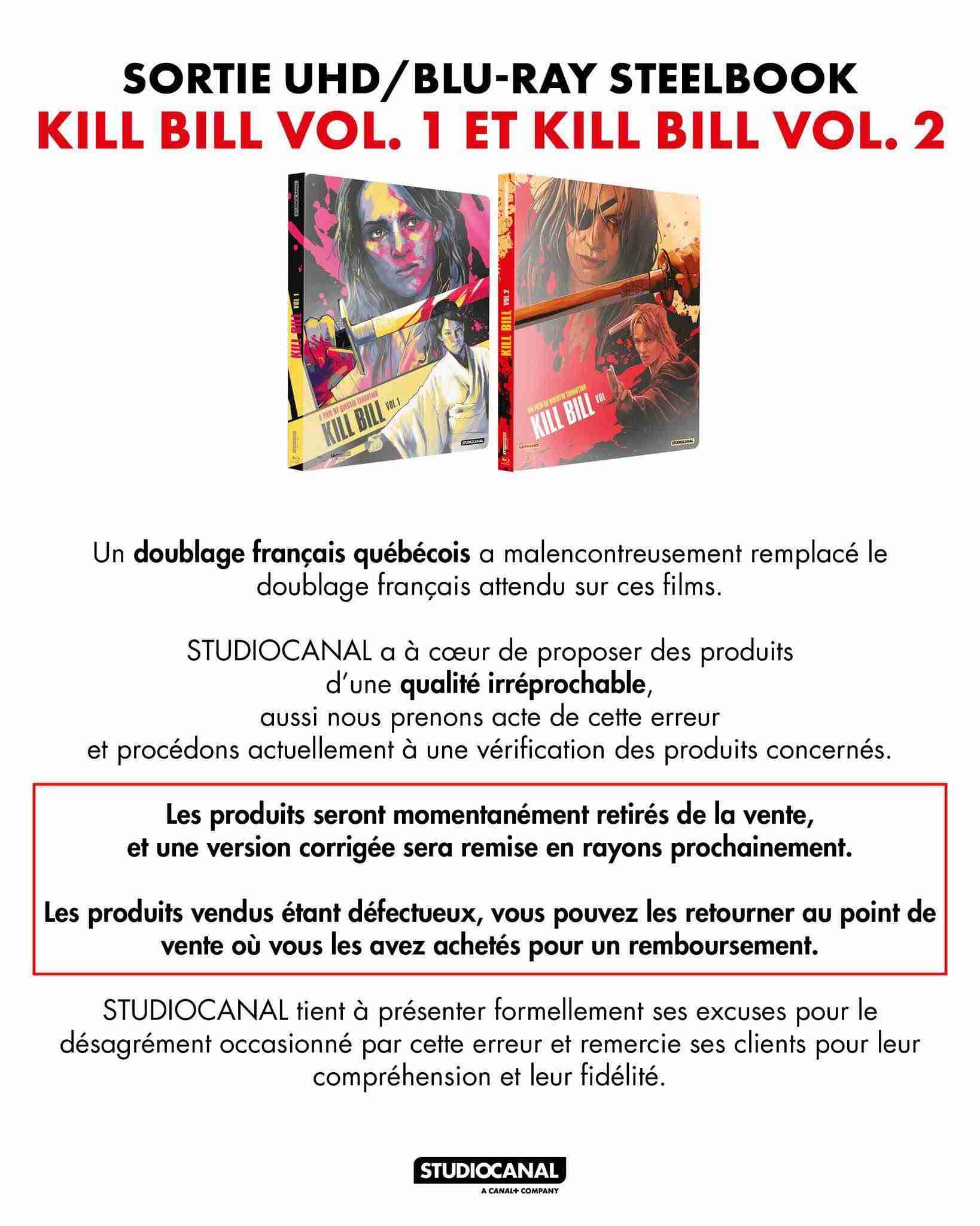 — MAJ le 18 décembre 2025 — Studio Canal a réagi par rapport au problème de la VFQ sur Kill Bill Vol.1 et 2.