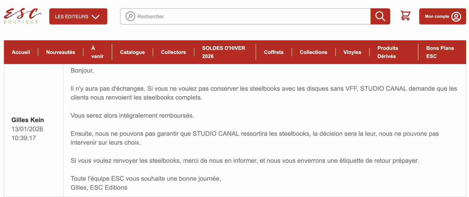 Et même pas sûr qu’ils ressortent des steelbooks, pffff, ils n’assument pas leur erreur et à tous les coups, on aura finalement pas la VFF.