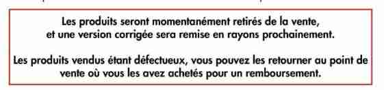 Ils l’ont communiqué les types « et une version corrigée sera remise en rayon prochainement ». J’pense que c clair xD