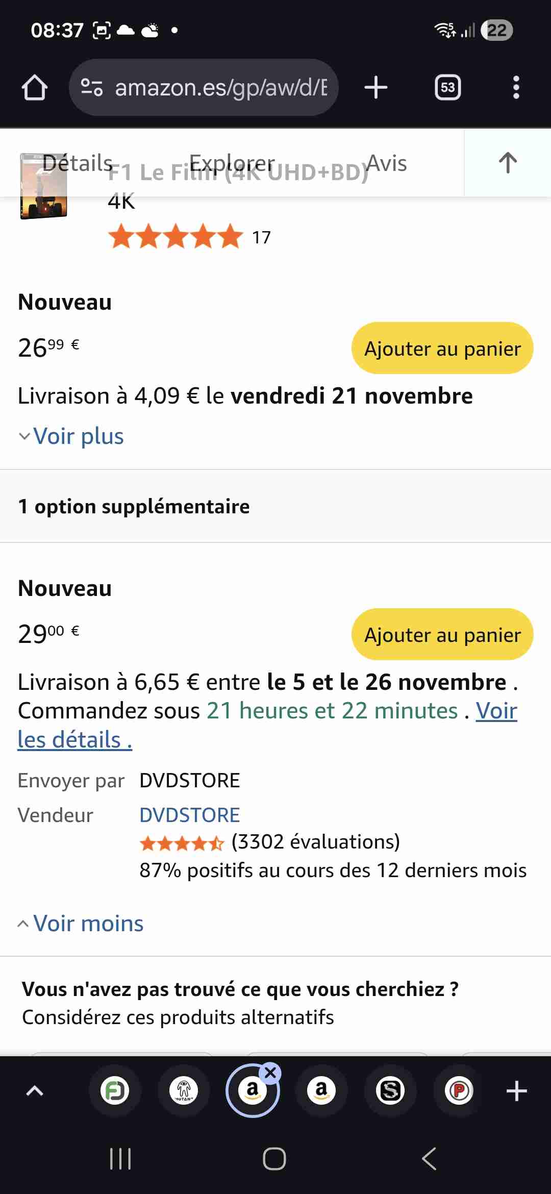 Par contre si Amazon ES annule la commande de l amaray au dernier moment je pête un cable.