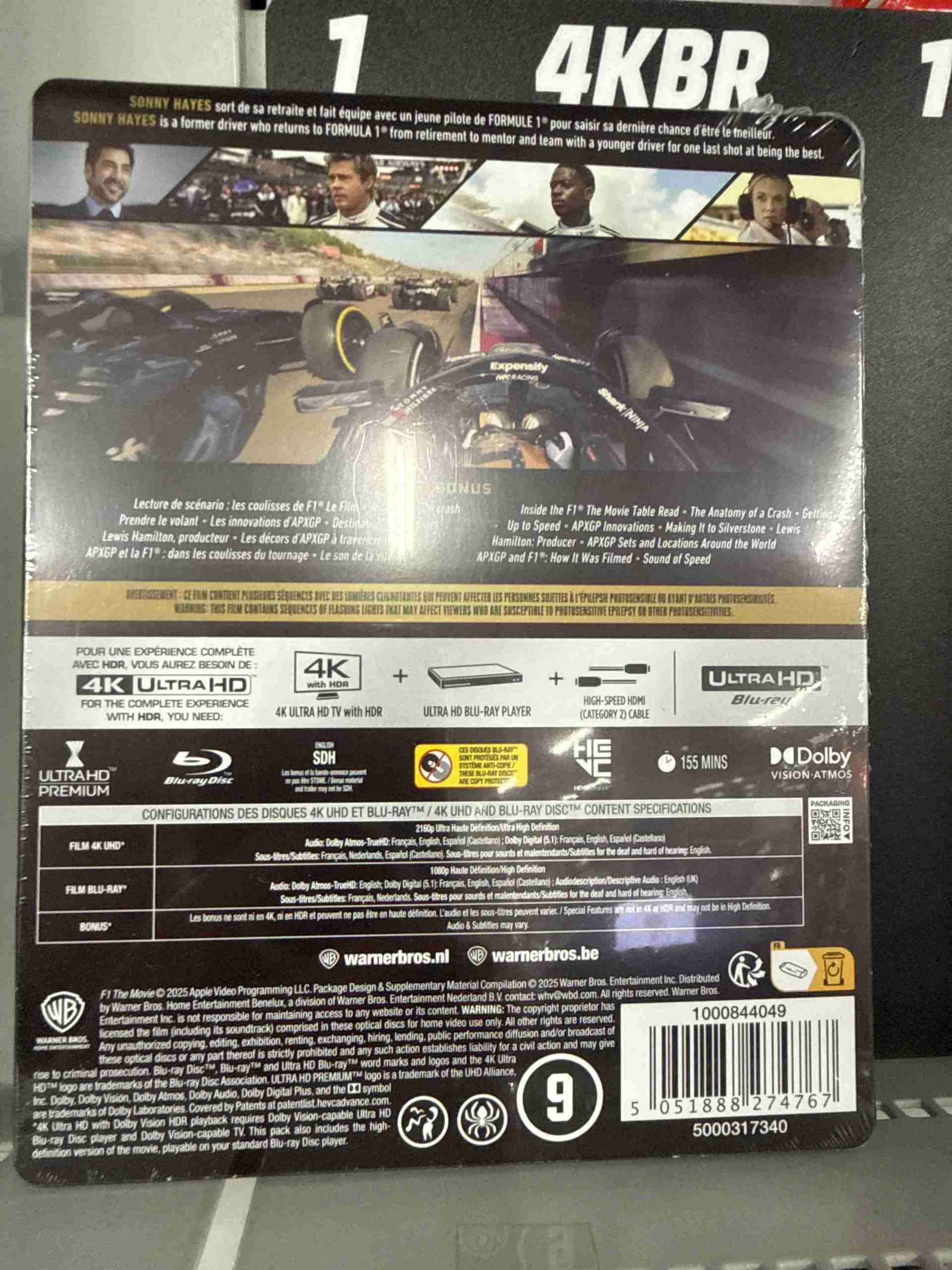 Pour info, en parallèle, j’ai acheté le dernier blueray benelux de chez Mediamarkt Jemappes. Sur la boîte, c’est noté F1 Le Film / The Movie.