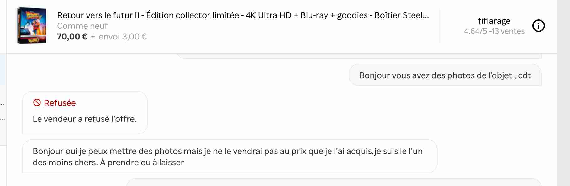 Le problème c’est que l’objet a acquis une certaine valeur par sa rareté et donc même sans être un scalper si je vends un steelbook je suis obligé de m’aligner sur les autres mais je cherche toujours à être le moins cher. Car si tu le vends quasiment au prix d’achat rien ne te dit que le mec qui achète est lui même un scalper qui va ensuite le revendre au double. Ça m’est arrivé une fois à vouloir être sympa et crois moi que ça m’a fait rager