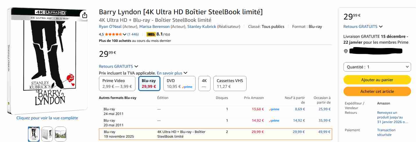 Précommandez* Barry Lyndon STEELBOOK 4K FR :