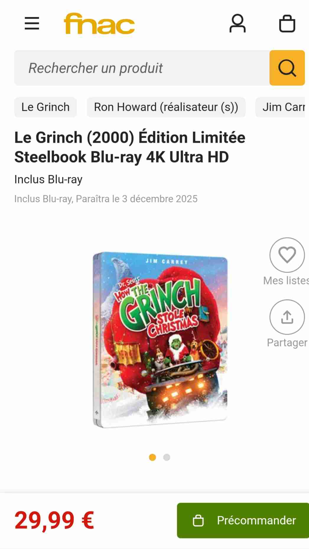 — MAJ le 08 octobre 2025 — Le steelbook 4K du film « Le Grinch » (2000) sortira bien en France. Les précommandes sont ouvertes.