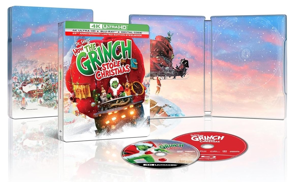 — 20 septembre 2025 — Le film avec Jim Carrey « Le Grinch » (2000) aura droit à un nouveau steelbook 4K pour ses 25 ans. Le visuel complet a été dévoilé. Universal avait sorti en France l’édition 20 ans, donc peut-être ce steelbook également ! A suivre.