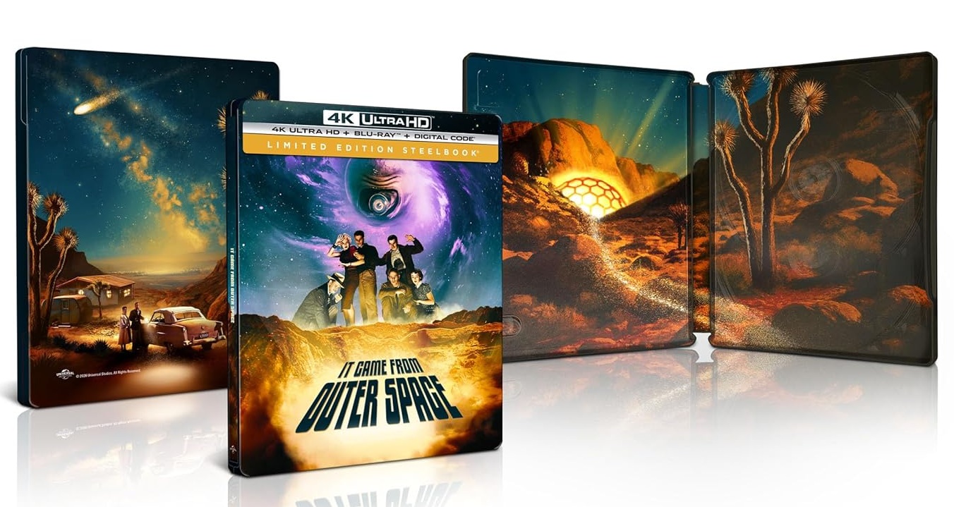 — 17 mars 2026 — Le film fantastique de 1953 « Le Météore de la nuit » (It Came From Outer Space en VO) aura droit à un steelbook 4K. Il est prévu pour le moment en Amérique, mais sortira peut-être ailleurs au vu de l’éditeur. Pas de VF, mais des sous-titres français sont présents.