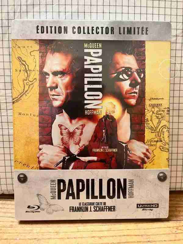 — 22 mars 2026 — Le film avec Steve McQueen et Dustin Hoffman « Papillon » (1973) aura droit à un steelcase 4K en France. Edition limitée à 200 exemplaires ! Il est donc probable que le steelcase soit exclusif à la boutique éditeur (lien plus bas).