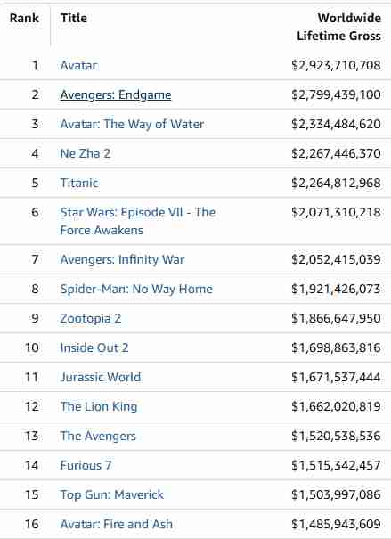 Ah quoique, Avengers c’est pas terminé OMG, Décembre 2026 il y en a un autre (Doomsay) En 2027 (Secret Wars) aussi… Pourtant c’était pas le EndGame? hahaaaa Ils doivent flipper de la machine Avatar, faut ramener du chiffre Ah Marvel, ils vont nous faire un nouvel F&F eux pour sûre… Après je doute que Cameron va continuer… Mais quand tu vois Terminator ça a continué sans lui… et v’là les daubes. Donc tout est possible après tout… Surtout quand il aura passé l’arme à gauche, ils sauteront sur les droits pour ramener du cash à la machine… Faut pas sous-estimer… Read more »